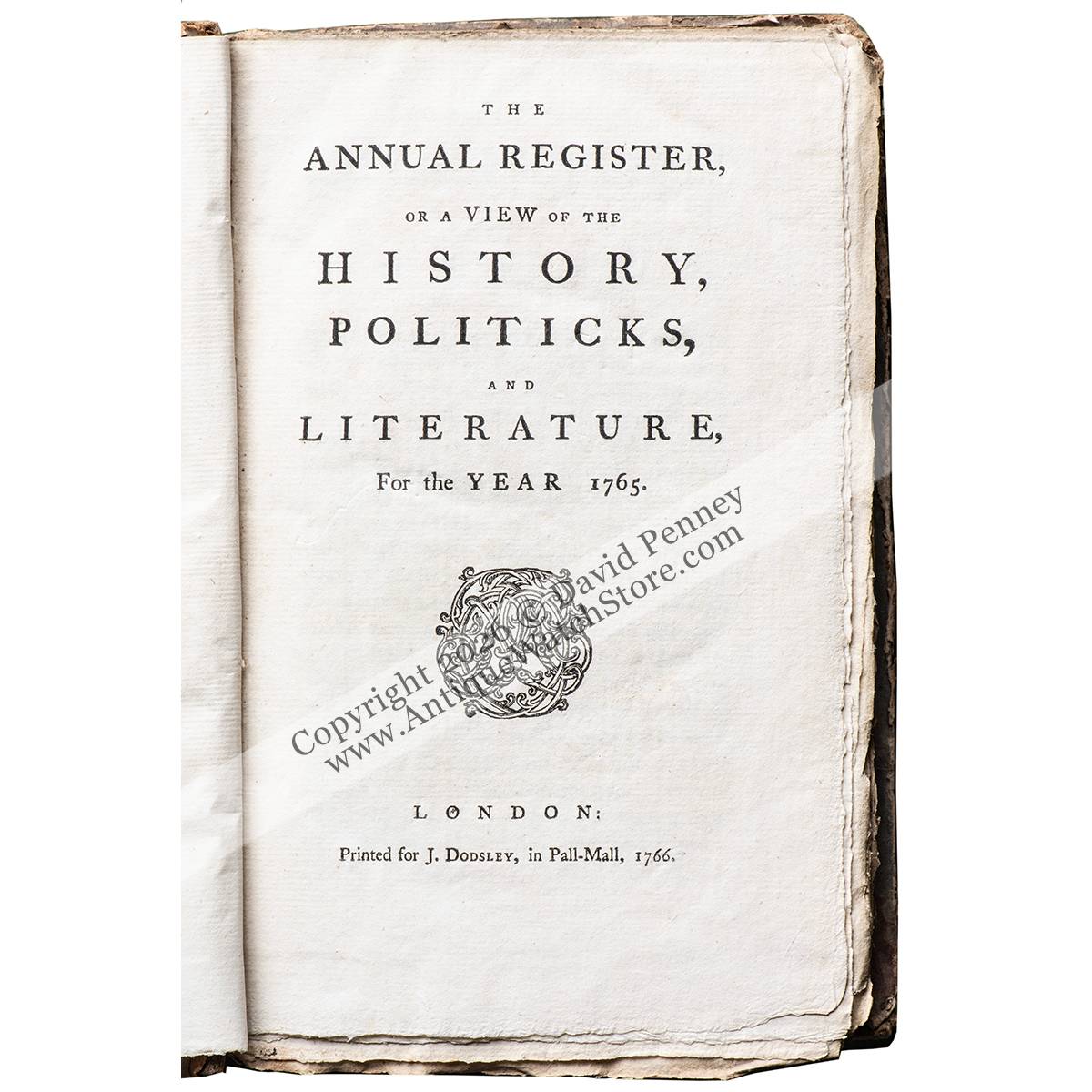 The Annual Register… is a noted and long established reference work which has been published every year since 1758. It records and attempts to analyse the year’s major events, developments and trends throughout the world, and was originally printed for James Dodsley, Pall Mall, being under the editorship of Edmund Burke. It was so popular that it had various reprints but good clean copies are not easy to find, especially of the first edition.